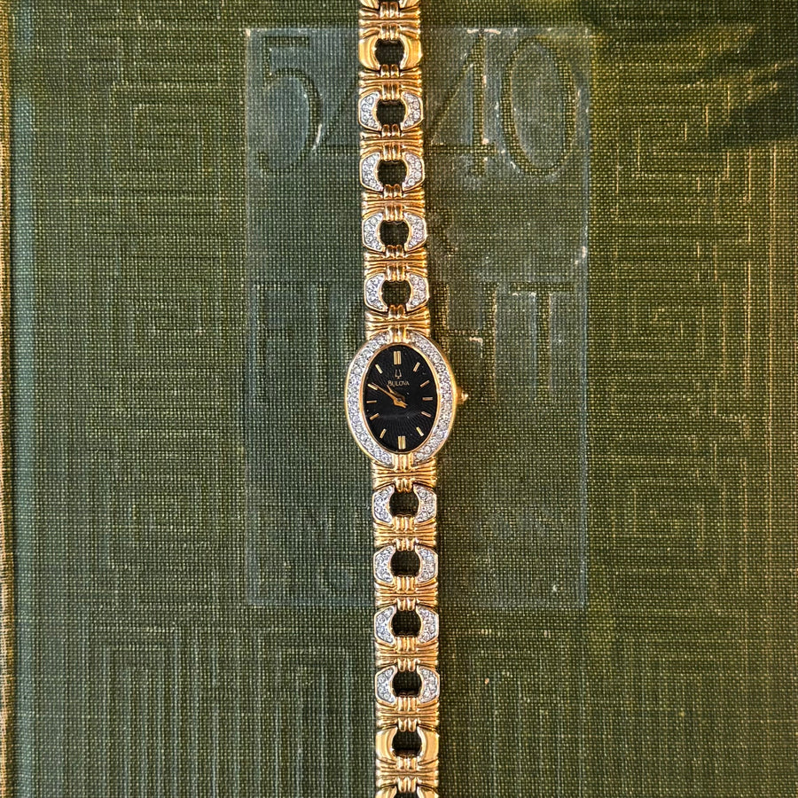 Gold Watch with Rhinestones & Black Face