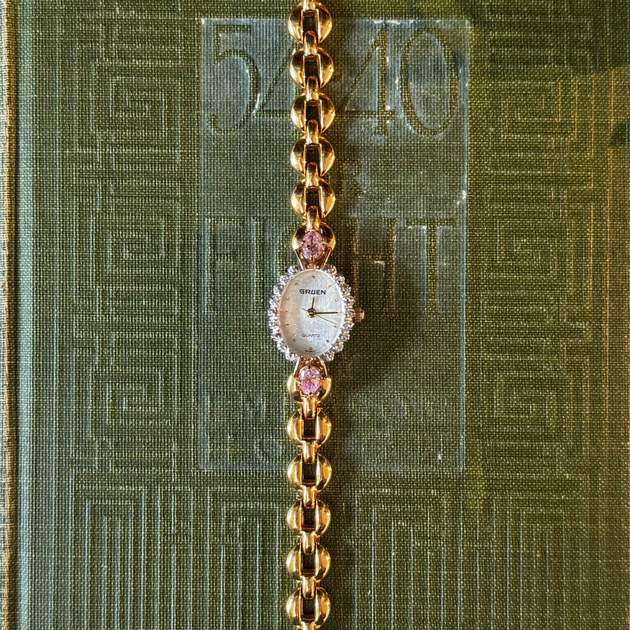 Two Tone Watch with Genuine Pink Stones