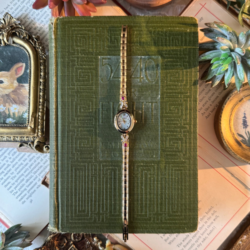 Two Tone Watch with Genuine Red Stones